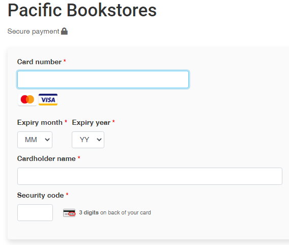 No. For your security, all credit card details are encrypted and securely stored by MAS approved payment provider. We respect your privacy and in compliance with PDPA, Pacific Bookstores do not share or sell your personal information with others. Learn more about our privacy policy here.
